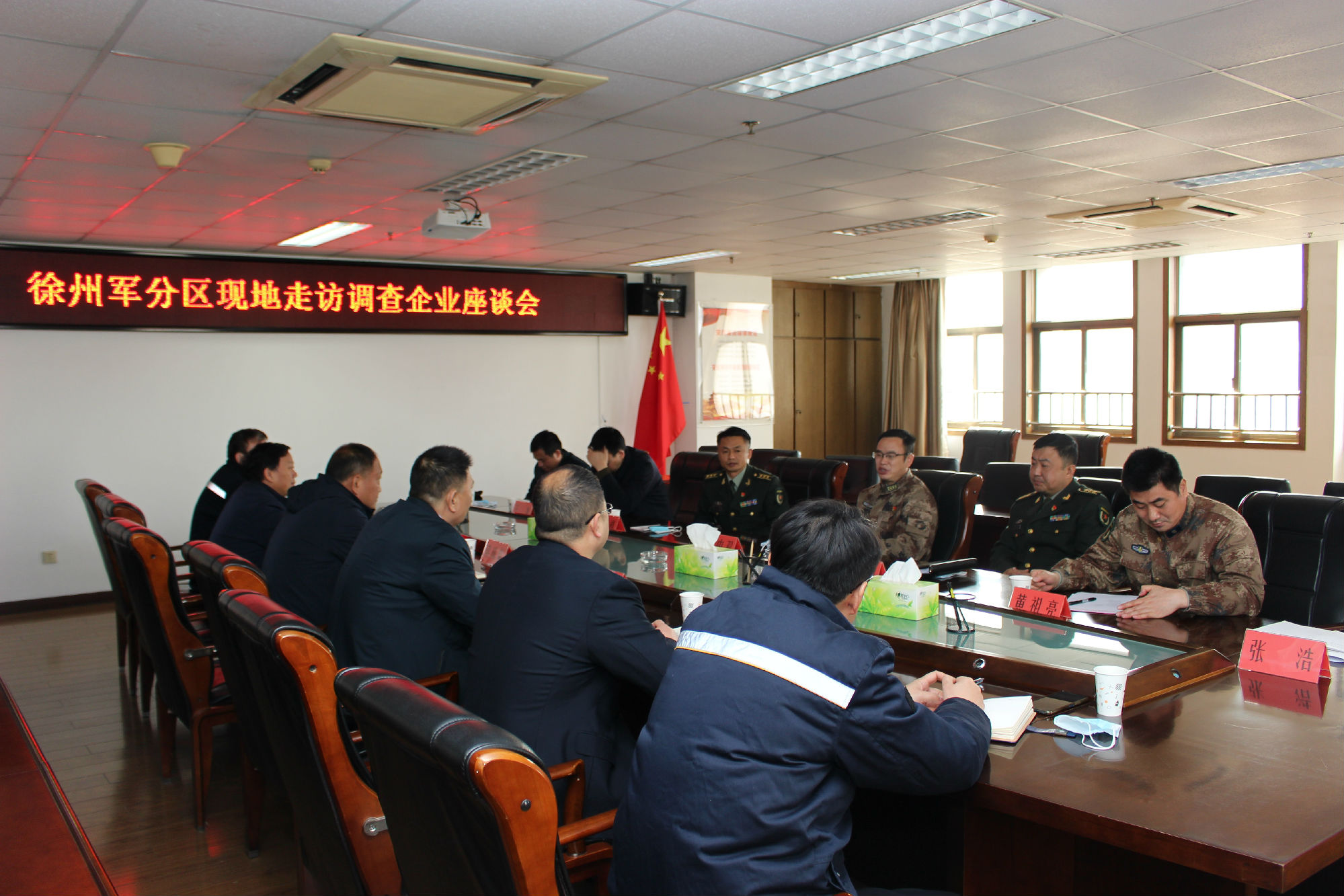 2月22日上午,徐州市軍分區(qū)政委李中雙,泉山區(qū)政府副區(qū)長(zhǎng)王龍,泉山區(qū)人武部部長(zhǎng)趙超,政委杜法祥,參謀黃祖亮、參謀張學(xué)儒一行到集團(tuán)走訪座談。集團(tuán)總經(jīng)理馮陸陸,常務(wù)副總經(jīng)理蔣成彪,副總經(jīng)理丁玉華,紀(jì)委書記、工會(huì)主席袁夫松參加會(huì)議。
