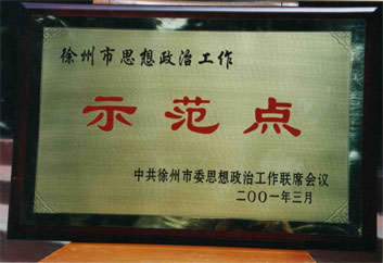 2001年3月,中共徐州市委思想政治工作聯(lián)席會(huì)議中,我公司獲得“徐州市思想政治工作示范點(diǎn)”稱號(hào)。