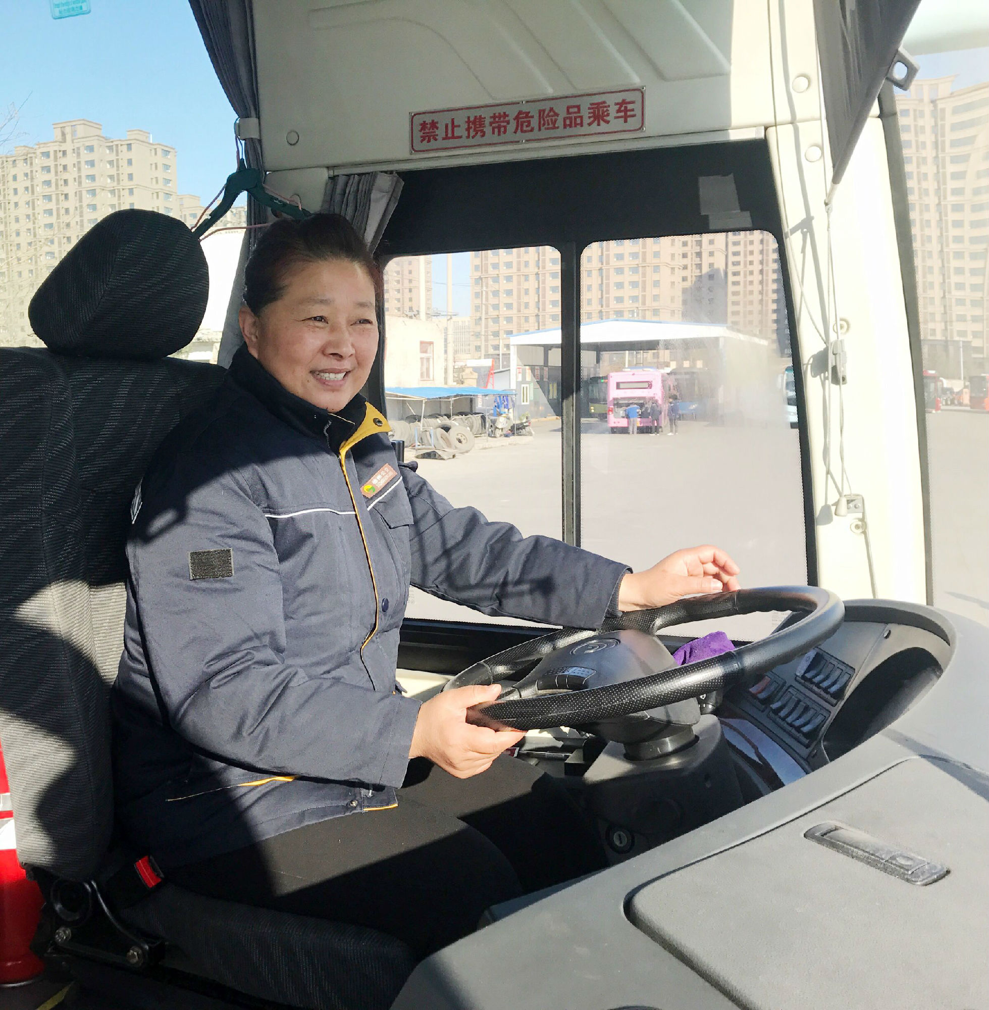 清晨,太陽(yáng)還在地平線懶洋洋地徘徊,一個(gè)嬌小的身影已邁著健步走向她形同家般的公交車(chē)上。伴著學(xué)生們的歡聲笑語(yǔ),她準(zhǔn)時(shí)把他們送到校門(mén)口。她就是新城包車(chē)隊(duì)的駕駛員房穎,大家親切地稱(chēng)她房姐。