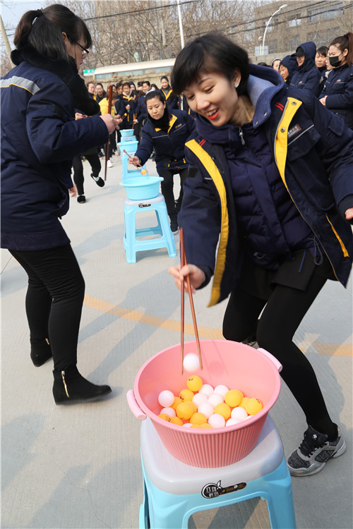 “穿針引線接力賽”和“夾乒乓球比賽”比較有意思,項目充分展現(xiàn)了女工們心思細膩的一面和嫻熟的家務(wù)活兒功底。手捏繡花針,穿針引線,筷子夾乒乓球,分明是練“炸丸子”嘛。參賽隊員情緒飽滿,勠力同心,密切配合,氣氛歡快熱烈而緊張,一場場精彩的比拼把運動會推向一個又一個高潮。尤其是最后一項“搶板凳比賽”,看誰反應(yīng)快,比誰會“搶”,快樂有趣,更是引來一次次加油喝彩,一波又一波歡聲笑語!
