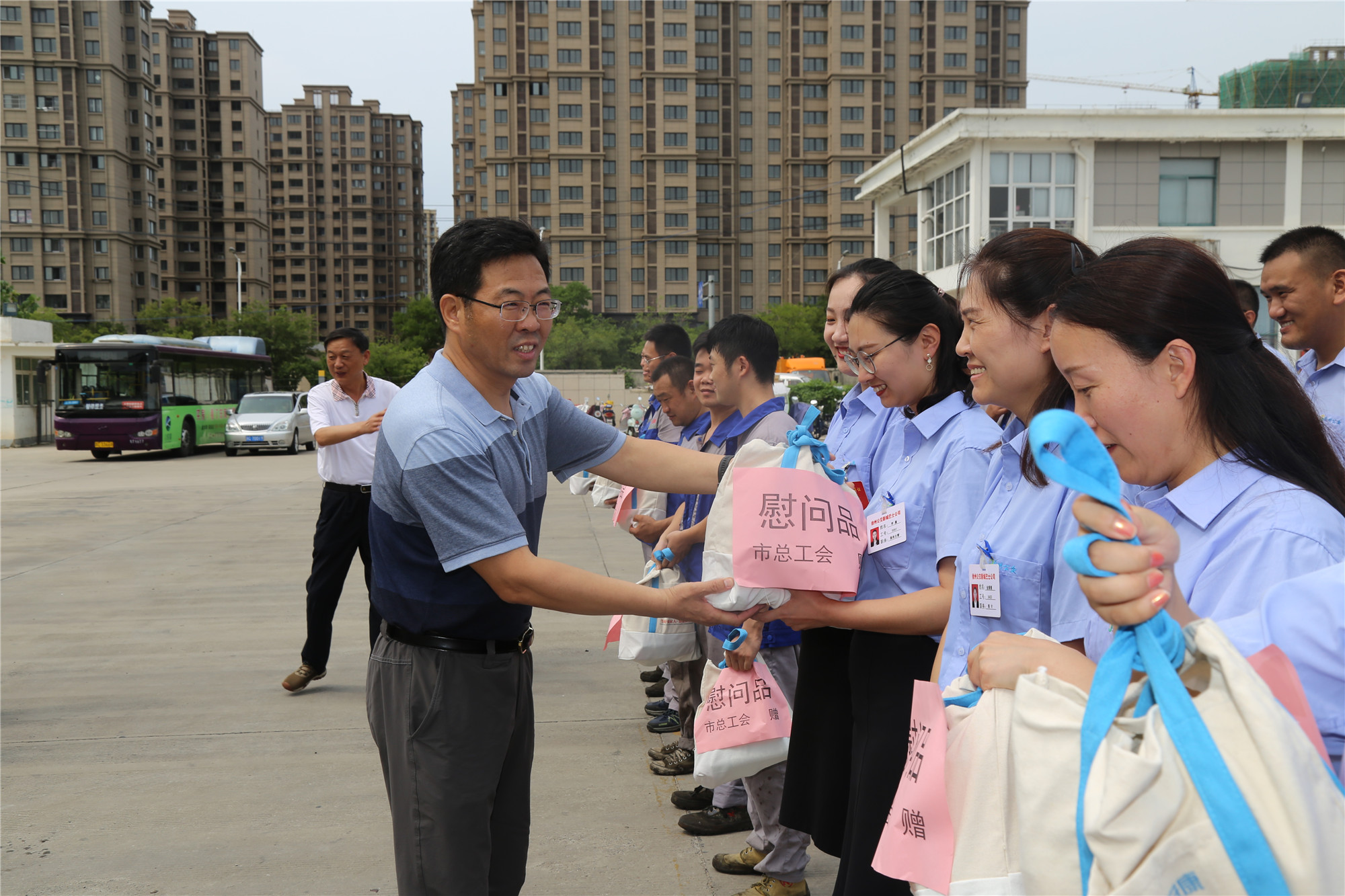 正值盛夏,近期我市持續(xù)高溫、濕熱多雨,持續(xù)攀升的炎熱天氣“烤驗(yàn)”著堅(jiān)守崗位的公交職工。三伏天里,工會娘家人總是心系一線職工安康,8月1日下午,徐州市總工會黨組成員、副主席王建民,副調(diào)研員馮相合等一行,在市交通運(yùn)輸局工會副主席巨玲和徐州公交公司總經(jīng)理馮陸陸,公司黨委副書記、紀(jì)委書記、工會主席竇同銀的陪同下,頂烈日冒酷暑來到郭莊路公交停車場,看望慰問了奮戰(zhàn)在高溫一線的公交職工,送來了高溫慰問品,更送來了殷殷關(guān)愛和叮嚀,讓大家感受到了夏日里的絲絲“清涼”。