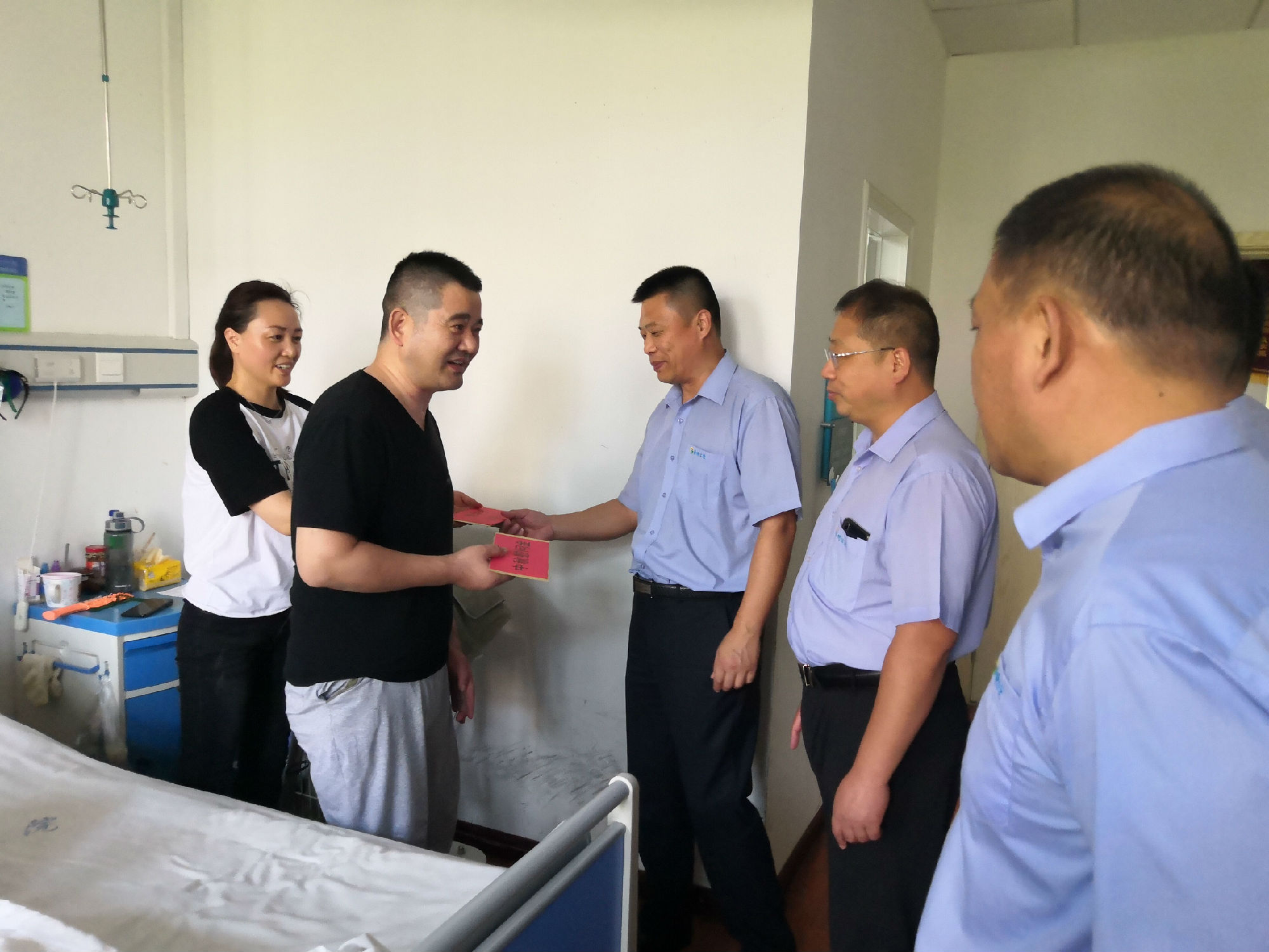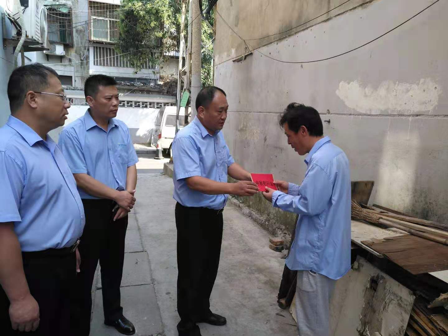 在督導(dǎo)隊(duì)員岳雷家中,馮陸陸總經(jīng)理鼓勵(lì)他保持輕松的心情,樹立克服困難和戰(zhàn)勝疾病的堅(jiān)定信心,努力走出困境。同時(shí)要求督導(dǎo)隊(duì)多給予關(guān)心,盡力幫助解決生活工作中的困難。
