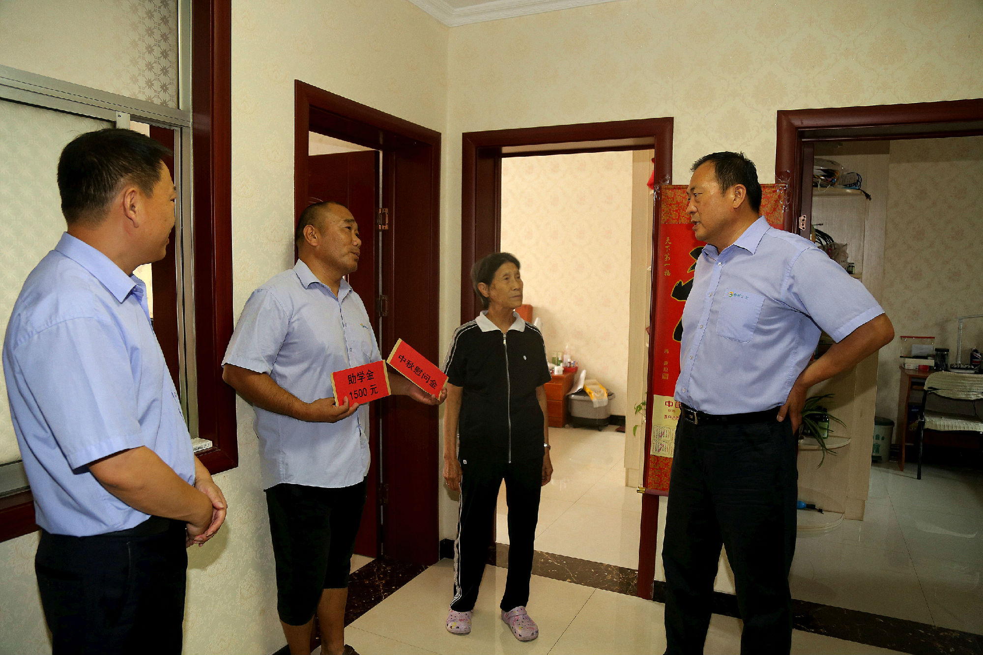 公司領(lǐng)導(dǎo)慰問(wèn)組分赴困難職工家中、醫(yī)院,與他們親切交談,了解他們的工作、生活及家中成員狀況和困難情況,同時(shí)為他們送去了中秋節(jié)慰問(wèn)金、助學(xué)金及中秋祝福。