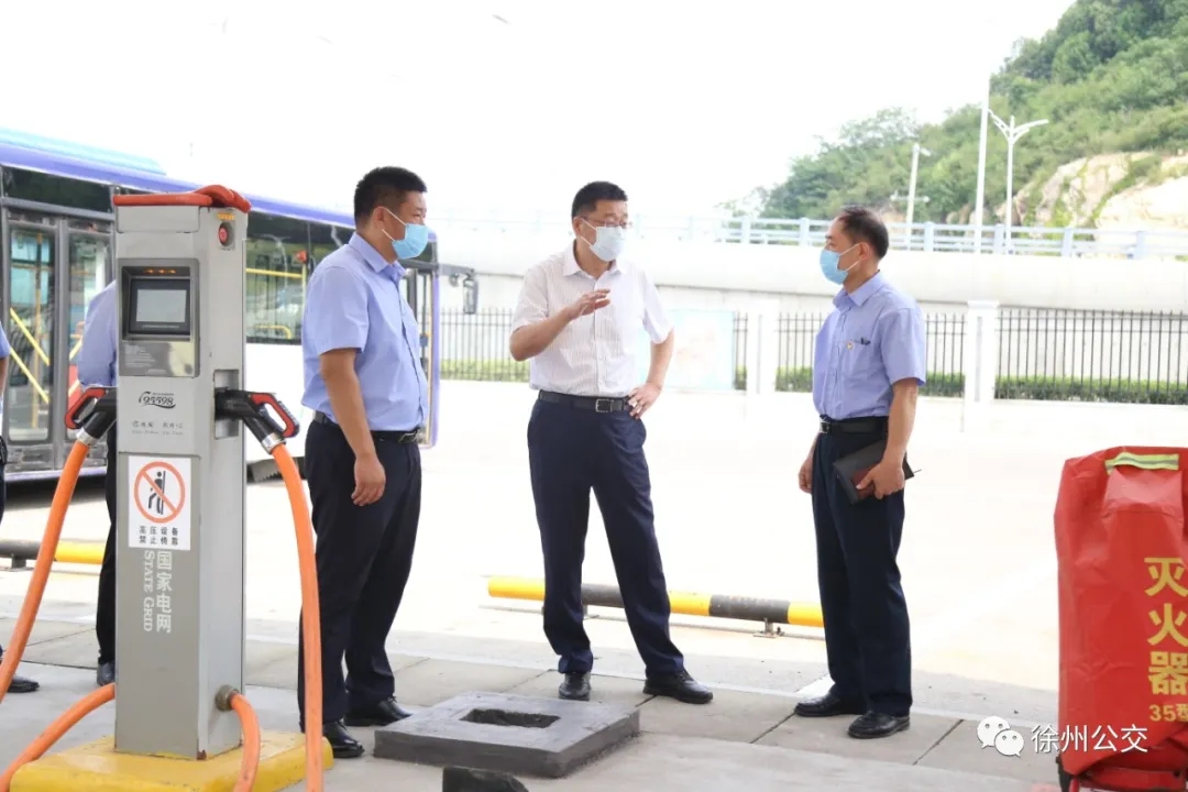 賈泉涌等一行先后來到徐州東站的停保場、充電站、始發(fā)站等處現(xiàn)場查看調(diào)研,認真聽取了車輛充電用電、場站建設(shè)、線網(wǎng)規(guī)劃等相關(guān)工作情況的匯報。