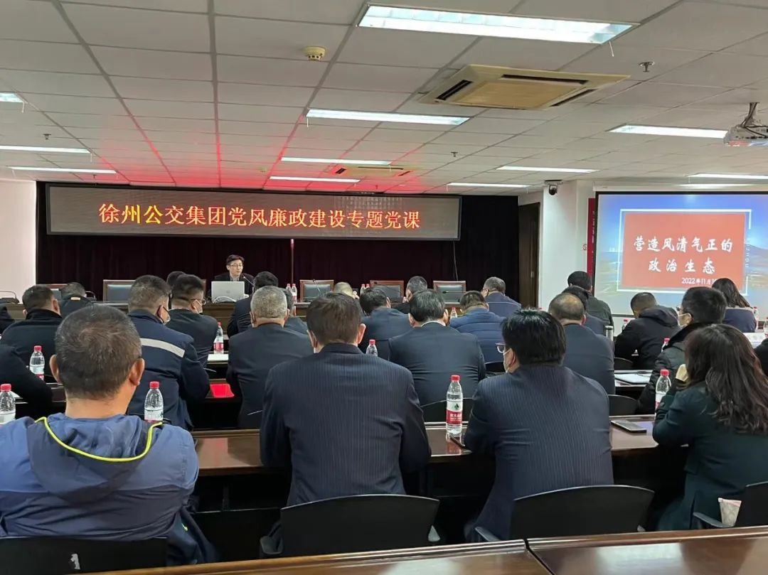為深入學(xué)習(xí)貫徹落實黨的二十大精神,堅定不移推進(jìn)全面從嚴(yán)治黨向縱深發(fā)展,營造集團(tuán)風(fēng)清氣正的政治生態(tài),11月17日,徐州公交集團(tuán)開展黨風(fēng)廉政建設(shè)專題黨課。公交集團(tuán)黨委副書記、總經(jīng)理袁夫松主持會議,集團(tuán)機(jī)關(guān)部室、基層單位負(fù)責(zé)人等50余人參加學(xué)習(xí)。