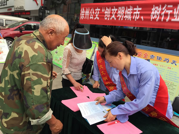 616上午,賈汪公司組織駕乘人員身披綬帶,在賈汪區(qū)中心步行街開展“創(chuàng)文明城市,樹行業(yè)新風”便民咨詢活動,發(fā)放《徐州公交乘車指南》,征求市民建議和意見,受到廣大市民好評。