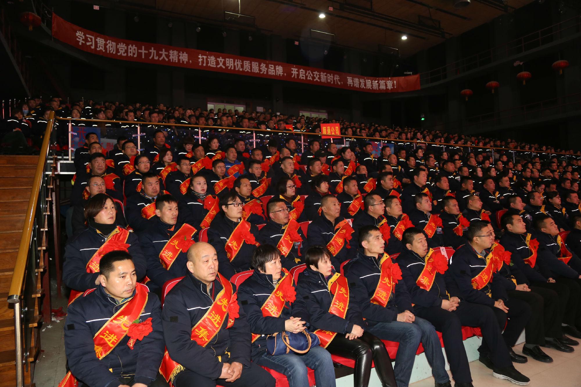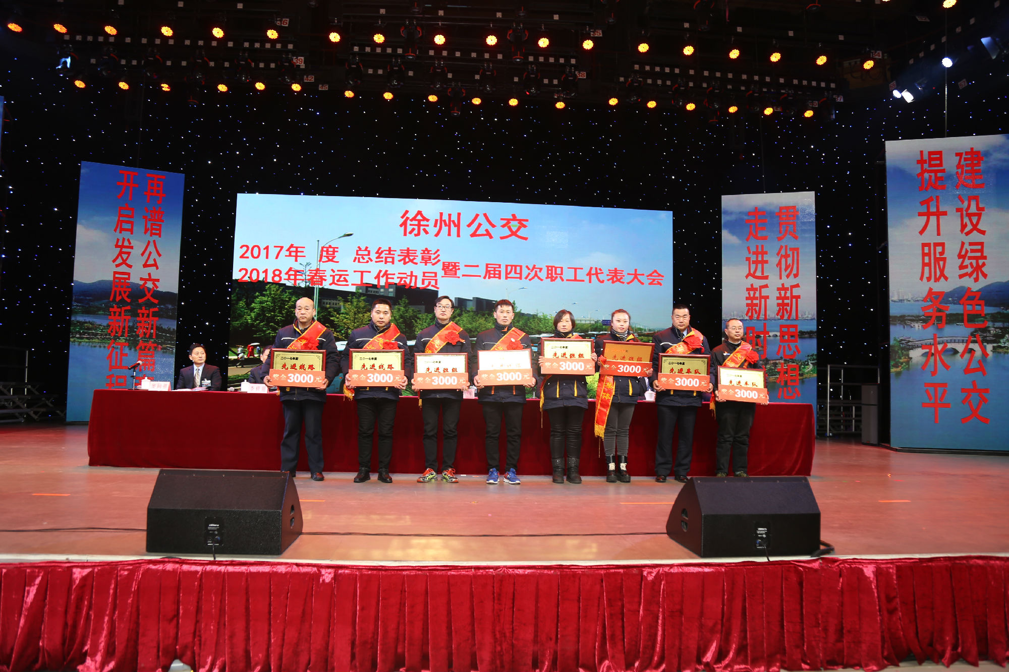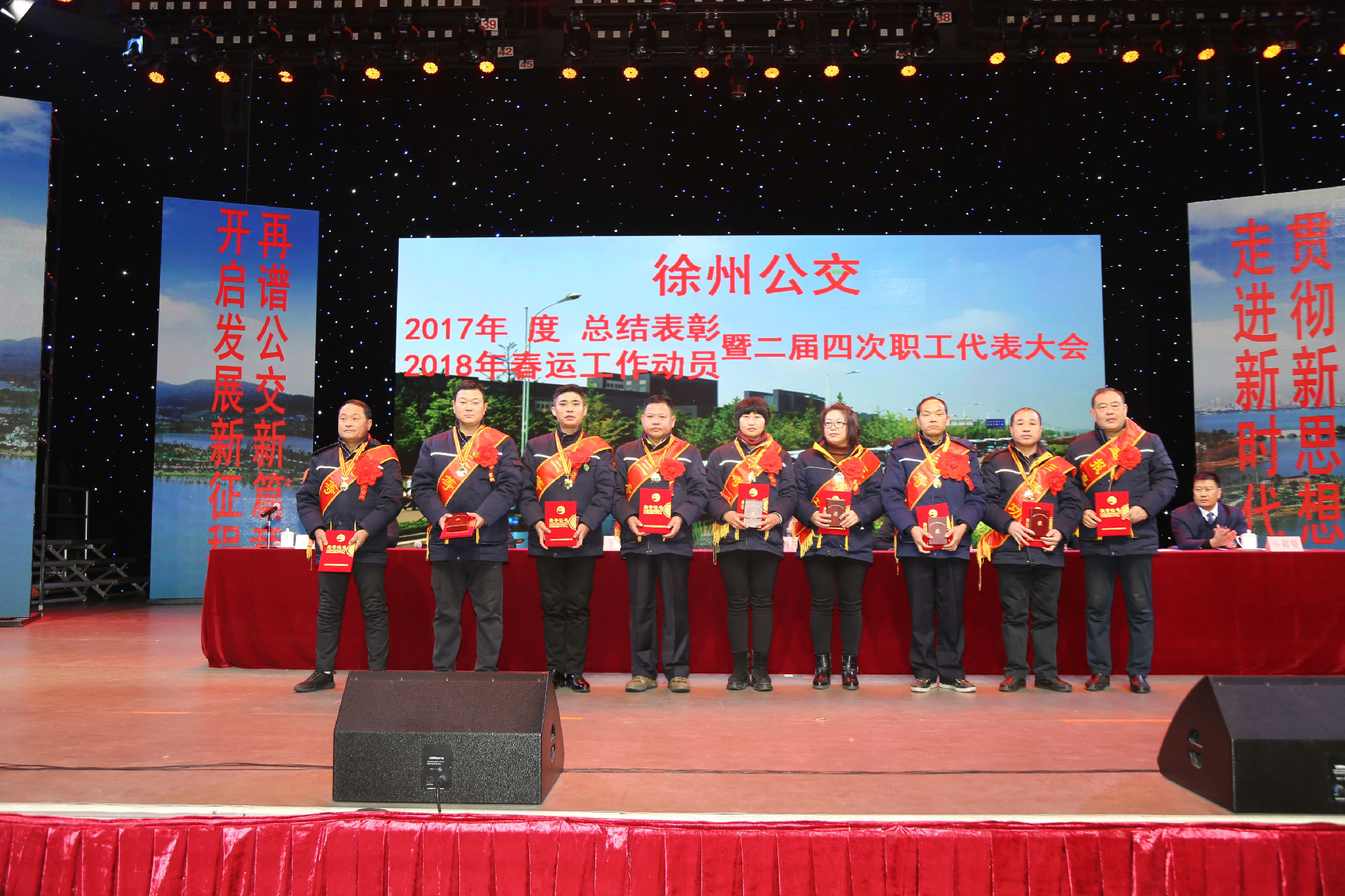 大會在莊嚴(yán)的國歌聲中拉開序幕。公司董事長、總經(jīng)理杜紅軍首先作經(jīng)理工作報告,對2017年“改革創(chuàng)新年”工作進行了全面總結(jié):一、實施“同城同價”,優(yōu)化運營管理,實現(xiàn)服務(wù)水平新突破。連續(xù)第五年面向全市征集線路線網(wǎng)優(yōu)化意見近3000條,據(jù)此新辟優(yōu)化線路29條。二、深化資源共享,在互聯(lián)網(wǎng)+企業(yè)管理上譜寫新藍圖。繼續(xù)深化集中維修,推行集中例檢。論證實施支付寶、微信、銀行卡閃付等智能化移動支付方式。三、深化文明創(chuàng)建,打造優(yōu)秀公交,服務(wù)民生出行贏得新口碑。在國檢、省檢中未失一分,圓滿完成創(chuàng)建驗收任務(wù)。投訴總數(shù)和有責(zé)投訴同比實現(xiàn)“雙下降”。乘客表揚同比上升近20%。公司在2016年行風(fēng)熱線上線單位滿意度評議投票中名列榜首。率先打造公交行業(yè)禮讓斑馬線嶄新形象,圓滿完成公交反恐防暴工作。四、著力綜合管理,聚合內(nèi)生動能,增強企業(yè)發(fā)展新優(yōu)勢。重新修訂2012版管理制度匯編和新版《徐州公交獎懲條例》。五、踐行十九大精神,推進和諧發(fā)展,開創(chuàng)黨群工作新面貌。接著,杜總分析了工作中存在的問題,提出下步工作重點。一、建設(shè)現(xiàn)代化公交,提升經(jīng)營管理水平,保障企業(yè)良性有序運行;二、踐行集約共享理念,深化科技應(yīng)用,開創(chuàng)公交事業(yè)發(fā)展新局面;三、建設(shè)平安公交,提升服務(wù)口碑,展示文明公交新形象;四、踐行十九大精神,構(gòu)建和諧公交,開啟黨群工作新面貌。